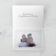 Elegant fotobaserat julkort gjort i vitt med tre ljusa regencyblå julgransprydnader med falskt glitter på framsidan. Den nedre delen av insidan har en yta för att personalisera med ditt fotografi och den övre delen har en anpassningsbar texthälsning som du kan anpassa till vad du vill.
