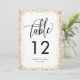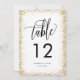 Detta trendiga bröllopsbordskortnummer har en skimrande kant av falskt guldglitter och kan personifieras med er bröllopsmonogram och datum!