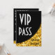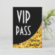 Inbjudan med en modern design med stjärnor utspridda över en stiliserad "sequin look" böjd form i nyanser av guldgult mot en svart bakgrund med 'VIP Pass du är inbjuden' skrivet i vitt och svart. Kan användas som bakgrund för din egen text, bilder och idéer. Texten kan enkelt ändras med hjälp av den tillhandahållna mallen eller klicka på "Anpassa"-knappen för att göra ytterligare ändringar. Observera att detta är en tryckt digital konstbild, den lyser inte eller innehåller riktig glitter eller paljetter.