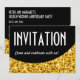 Inbjudan med en modern design med stjärnor utspridda över en stiliserad "paljettlook" böjd form i nyanser av guldgult mot en svart bakgrund med 'Inbjudan' 'kom och fira med oss!' skrivet i vitt. Kan användas som bakgrund för din egen text, bilder och idéer. Texten kan enkelt ändras med hjälp av mallen som tillhandahålls eller klicka på knappen "Anpassa" för att göra ytterligare ändringar. Observera att detta är en utskriven digital konstbild, den lyser inte eller innehåller riktiga glitter eller paljetter.