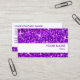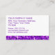 Affärskort med en modern design med stjärnor som är spridda över en stiliserad "sekvin look"-bakgrund i mönster i skuggor av lila och lila text i vit bakgrund Observera att detta är en tryckt digitalbild som inte skiner eller innehåller riktiga glitter eller sekvenser.