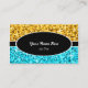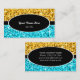 Affärskortsmall med en modern design med stjärnor som är spridda över en stiliserad "sekvinbakgrund" i skuggor av gult guld och blå med en svart oval och rand med vit och vit text. Det är enkelt att ändra texten med hjälp av mallen eller klicka på knappen Anpassa för att göra ytterligare ändringar. Observera att det här är en tryckt digitalbild som inte skiner eller innehåller äkta glitter eller sekvenser.