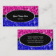 Affärskortsmall med en modern design med stjärnor som är spridda över en stiliserad "sekvinbakgrund" i skuggor av rosa och blått med en svart oval och rand med vit och vit text. Det är enkelt att ändra texten med hjälp av mallen eller klicka på knappen Anpassa för att göra ytterligare ändringar. Observera att det här är en tryckt digitalbild som inte skiner eller innehåller äkta glitter eller sekvenser.