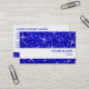 Affärskort med en modern design med stjärnor som är spridda över en stiliserad "sekvin look"-bakgrund i mönster i skuggor av mörk blått och blå text i vit bakgrund Observera att detta är en tryckt digitalbild som inte skiner eller innehåller verkliga glitter eller sekvenser.