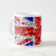 Flyg till den brittiska flagga med den här roligten, Union Jack-designen med stjärnor som är spridda över en stiliserad "sekvin look"-bakgrund i mönster. Mugg med ett rött, vitt, silver grått och blått anpassade som du kan anpassa med din egen text, bilder och dina idéer. Observera att detta är en tryckt digital bild. Produkten skiner inte eller innehåller äkta glitter eller sekviner.