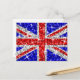 Flyg till den brittiska flagga med den här roligten, Union Jack-designen med stjärnor som är spridda över en stiliserad "sekvin look"-bakgrund i mönster. Vykort med rött, vitt, silver grått och blått anpassade som du kan anpassa med egen text, bilder och egna idéer. Observera att detta är en tryckt digital bild. Produkten skiner inte eller innehåller äkta glitter eller sekviner.