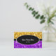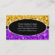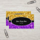 Visitkortmallen med en modern design som presenterar stjärnor spridda över en stylised "sequinlook" bakgrund skuggar in, av gult guld och lilor med ett svart ovalt och rand som kantas med vit och vittext. Texten kan lätt ändras genom att använda den förutsatt att mallen, eller att klicka skräddarsy "den" knäppas för att göra mer ytterligare förändringar. Please noterar detta är en utskrivaven digital konst avbildar, gör den inte sken eller att innehålla verkligt glitter eller sequins.