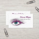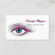 affärskorten för att fånga kosmetologi i öga för utbyggnadsställningarna i öga har en fantastisk blå öga med ögonfransarna i lila faux glitter. personliggör genom att lägga till ditt namn och din specialitet. Platt tryckt bild, INTE reflekterande glitter.