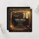Dramatic black and faux gold tone sparkles and stars glitzy "70" 70th birthday party design.
