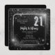 Dramatic black and faux silver tone sparkles and stars glitzy "21" gender neutral 21st birthday party design.