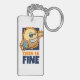 A happy Sun and an anxious Earth on a keychain or key ring. Edit the design to tweak the "THIS IS FINE" text and create a unique, customized item. Raise awareness about global warming with a climate change keychain featuring a grinning Sun wearing dark sunglasses, with one fiery arm around the Earth, which looks hot and nervous.
