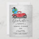 Skicka en snyggt studenten till din familj och dina vänner med det här återinspirerade resetemat-annonskortet. Den här designen har en röd vintage pickupare lastbil med en jordmån i baksidan, med en svart hylsa på en faux silver-bakgrund som har ett överlägg från karta. Namn, skolklass och datum för ceremonin, Designad av världsberömd konstnär ©Tim Coffey..