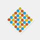 Abstrakt design med en halvsekel återpekande med sfärer i svart och ovaler i ljusblå, gyllene gult och bränd orange på vit bakgrund. Ett anpassade som du kan anpassa med egen text, bilder och egna idéer. En originalbild för digital konst skapat av Jess Perry på QuirkyChic Retro.