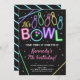 Glöd Bowling Födelsedagsfest Inbjudan Neonfärger