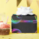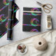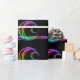 Glöd i det mörka neonet cirklar mönster på svart bakgrund som slår in papper