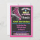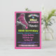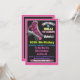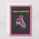 Toppen roligt glöd i mörk Roller Skating födelsedagsfest inbjudan. Har en glödande rosa zebra ränder på rullskridret och roligt. McBooboos illustration av hand plockade. Dessa inbjudningar glöms inte i mörken.