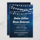 Glödande ljussträngar på Deep Blue Bokeh Bröllop Inbjudningar