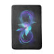 Oändlighetssymbol med magisk, lila glödande fjäril med genomskinligt vingar, mot svart bakgrund. Glowing Butterfly.