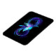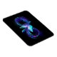 Oändlighetssymbol med magisk, lila glödande fjäril med genomskinligt vingar, mot svart bakgrund. Glowing Butterfly.