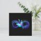 Oändlighetssymbol med magisk, lila glödande fjäril med genomskinligt vingar, mot svart bakgrund. Glowing Butterfly.