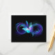 Oändlighetssymbol med magisk, lila glödande fjäril med genomskinligt vingar, mot svart bakgrund. Glowing Butterfly.