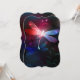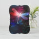 Flygande, röd drakflygning, med genomskinlig, detaljerad vingar på mörk, nattlig, ljusstrålande bakgrund med tropiska växter och eldflugor. Red Dronfly.