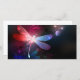 Flygande, röd drakflygning, med genomskinlig, detaljerad vingar på mörk, nattlig, ljusstrålande bakgrund med tropiska växter och eldflugor. Red Dronfly.