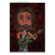 En digital bild av en utbränd rockstjärna skapat från en ritstift. Musikern spelar en grönt gitarr och har brunt hår och rosa skinn. Tecknade figurer har stora läppar- och mörkar runt sitt ögon. Bakgrunden är en bränd röd mörk med svarta vinklar och en subtil zoomeffekt.