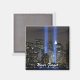 Glöm aldrig att minnas dem som drabbades av tragedin den 11 september vid tvillingen torn i världshandelscentrumet i New York. Detta foto (av US DOD) skildrar det minnesmässiga tornen av ljus i ljusblått handdukar över mörkens skyscraper för nattskylten och ljus där byggnad brukade vara. Stödja tillfälle och visa er aktsamhet och omsorg som medborgare i det patriotiska USA-landet.