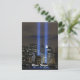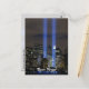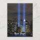 Glöm aldrig att minnas dem som drabbades av tragedin den 11 september vid tvillingen torn i världshandelscentrumet i New York. Detta foto (av US DOD) skildrar det minnesmässiga tornen av ljus i ljusblått handdukar över mörkens skyscraper för nattskylten och ljus där byggnad brukade vara. Stödja tillfälle och visa er aktsamhet och omsorg som medborgare i det patriotiska USA-landet.