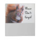Ett foto av en söt, liten ekorre med meddelandet "Glöm inte!" visas på det här anteckningsblocket. Med den här designen tryckt på varje sida är det perfekt till använda hemma, på jobbet och i skolan! Med den vänliga påminnelsen från ekorren om att inte glömma dessa viktiga data, livsmedel eller budskap kan man använda sig själv eller ge som gåva!
