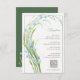Bröllopsmottagningskort med en elegant bukett av mjuka blå glöm-mig-blommor med ljust grönt löv och böjda stjälkar, vår eller sommarnaturlig pastel färg, en romantisk ljusbukett av vilda blommor. Botanisk digital vattenfärg. Kortet Cute-blommans botaniska mottagningskort. Glöm mig-Inte samling.