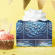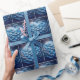 Blå- glöd- ej blommor är hjärtformade och flyter försiktigt på mörk vatten, med mjuka gevär utåt