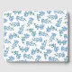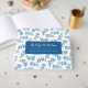 Fäst gäst bok med ett blommönster i blått och vitt med glömska. Lägg till tillfälle eller ditt företag namn på en blå etikett på omslaget. Även ryggraden är blå och du kan anpassa den med din egen text.