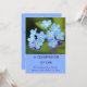 Firande på livets inbjudningskort finns blå glöm-mig-blommor på kortets övre del och nedanför är namn på den person vars liv firas tillsammans med hans/hennes data om födsel och död. På baksidan finns det en liten massa glömska och alla detaljer om evenemanget. Texten på framsidan och baksidan är redigerbar så gå vidare och ändra meddelandena, teckensnittet färg, placeringen, storleka och stil och gör det till din egen. Om du behöver andra artiklar för att matcha dessa inbjudningar, som papper tallrikar och middagservetter eller om du föredrar en annan typ av blomma, kontakta mig genom Zazzle och jag ska göra mitt bästa för att hjälpa dig. Jag hoppas att du kärlekar de vackra, bortglömda, inte Firande av livets inbjudningskort!