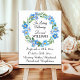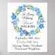En elegant minnesstund för begravning med livstecken, med akvarellgrönska och blåa Glöm-mig-inte-blommor.