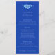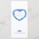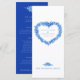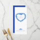 Modern blommig hjärtkonst i bläck och akvarell i blå och vit meny för middagsbjudning eller speciella tillfällen, kort eller paket med menyhållare. Redigera denna 4-rättersmeny med dina egna ord. Enkel men modern menyformgivning i blått och vitt. Perfekt för ett "glöm-mig-inte" eller blått kärlekstemat bröllop eller evenemang. © Originella botaniska glöm-mig-inte blommor i en handritad hjärtform med bläck och akvarell-teknik och formgivning av Sarah Trett exklusivt för www.mylittleedenweddings.com på Zazzle.