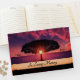 Ett foto från fantastisk av ensam träd vid vatten, där lila himlar och sol pekades ut mitt i träd. Det verkar som om träd har satt världens ljus med stora nav av plumb och violett. Fyll i med namn och datum. Under täckmantel kan födelseår och dödsår läggas till himlar. I ryggraden avled namn och trafikdatum.