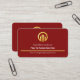 An all dark red cover features a gold line near the base of the card. It houses your prestigious name, the business name and a slogan tagline caption option. At the top is a faux gold global logo you can use.