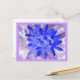 Det här vykortet innehåller ett vackert och mycket detaljerat foto av ett glans av blommorna från snö (chionodoxa), som tas med makrofotografi, vilket ger en fantastisk bild. Fotografiet har blivit artificiellt färgad, vilket har lett till att blåa blommor chockats av lövens mistartade lila av blek. En blek lila ram slutför konstruktionen.