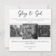 Detta minimalistiska julkort har en elegant och ett klassiskt modernt system för svart, grått och vitt färg. Ord "Glory to God" står överst i delikat kalligrafi och skriver tillsammans med skriften Luke 2:20 - "shepherdsen kom tillbaka, glorifierade och berömmande Gud för allt sak de hade hört och sett, vilket var precis som de hade fått" skrivet med ett tydligt typsnitt nedan. Det här kortet innehåller utrymme för 3 av dina favoritfoton av dig och din familj från det senaste året samt möjligheten att byta hälsning över ditt namn och år. Kortets baksida ger utrymme för ett personligt brev eller meddelande om du vill inkludera ett sådant, eller om du kan lämna det tomt. Välkomna till er denna jul och all lycka i nyår!