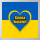 Poster with the flag of Ukraine, heart in the Ukrainian colors, and text saying "Glory to Ukraine" in Ukrainian