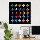 Add a bold focal point to your office, studio, or home with this vibrant glossy arrow icon poster. Featuring twenty-five colorful directional pointers arranged in a sleek grid, this high-quality print offers a modern and tech-inspired aesthetic. The high-contrast design on a black background makes the rainbow hues pop, creating a sophisticated piece of wall art perfect for graphic designers, developers, or anyone who appreciates clean, contemporary digital design.