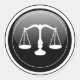 Glossy Black White of Justice Round Sticker. Den cirkulära utformningen gör den till perfekt som kuvertförsegling.
