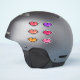 Sex kitschyvinylklistermärken av glansig läppar: lila, shock rosa, rosa, korallets rosa, persika och guldfärgad gult.