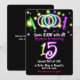 GLOW Lights 15-årsfest Inbjudan för 15-åringar. Anpassa texten på framsidan och baksidan.