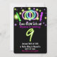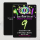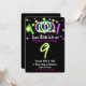 GLOW Lights 9-årsfest Inbjudan för 9-åringar. Anpassa texten på framsidan och baksidan.