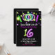 GLOW-ljus 16-årsfest Ålder 16 Inbjudan. Anpassa texten på framsidan och baksidan.
