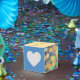 Skicka bort dina gäster med en bröllopsförmån som de aldrig kommer att glömma med den här eleganten anpassad design med flytande hjärtan som glappar mjukt i färg av gult, rosa och teal på blå bakgrund. Anpassa med din information och se matchande objekt i den här samlingen.