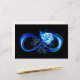 Luminous infinity symbol with glowing, beautiful, lushly blooming rose made of blue flames on black background.